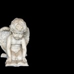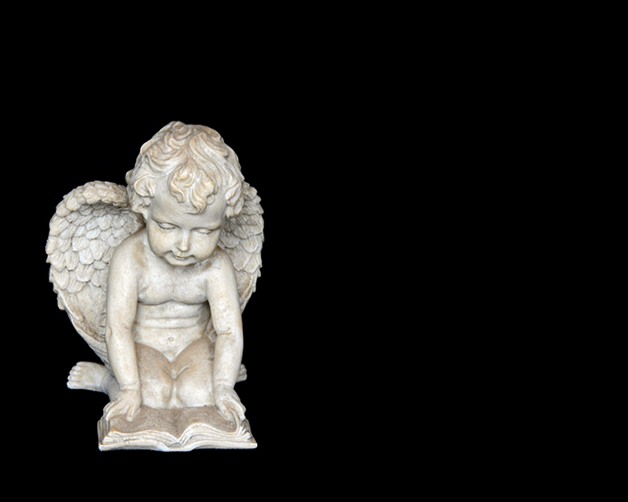 Lapida clasica de 2 cms de granito negro intenso con Incrustacion de angel 1082.