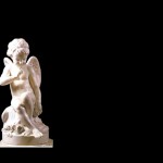 Lapida clasica de 2 cms de granito negro intenso con Incrustacion de angel 1084.