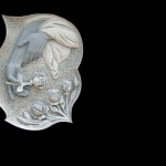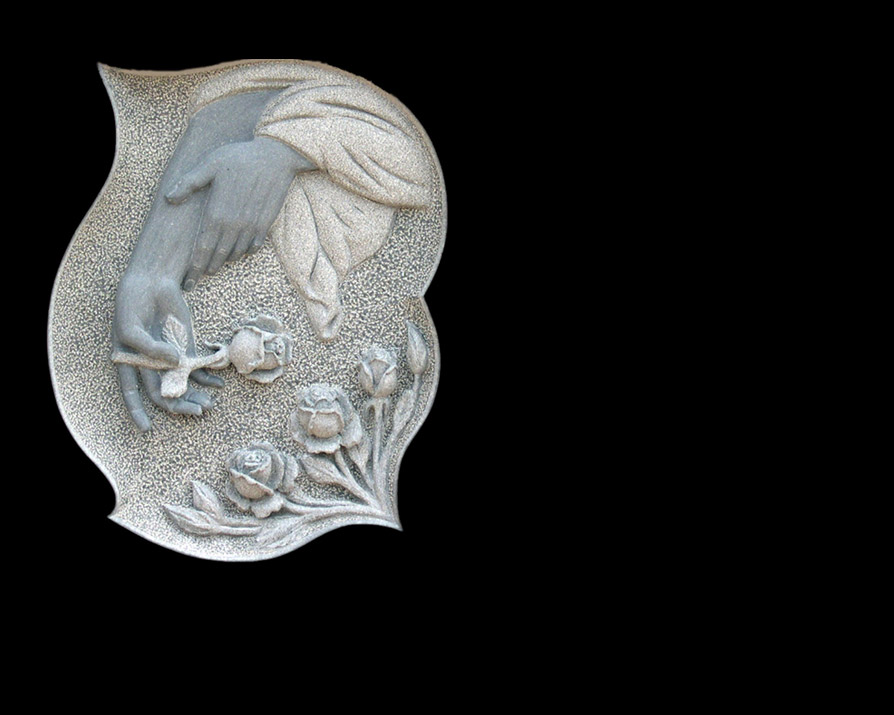 Lapida clasica de 6 cms de granito negro intenso Relieve con Flores rel6.