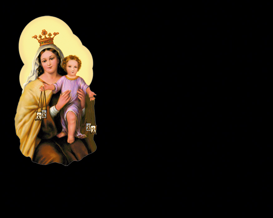Lapida clasica de 2 cms de granito negro intenso con Incrustacion en color de Virgen Carmen Aura.
